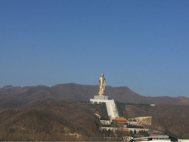 金碧輝煌的堯山福泉,緊鄰中原大佛,遠遠看去,有點仙氣繚繞的感覺。