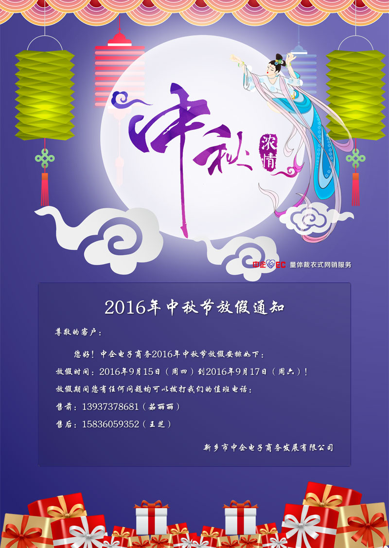 2016年中秋節(jié)放假通知 更新時間:2016-09-14點擊次數(shù):5147次