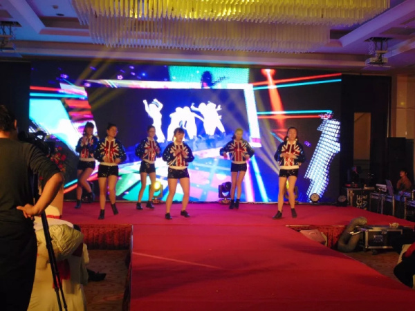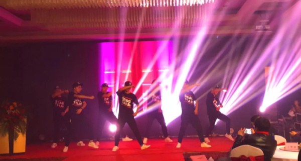 動感的音樂,閃亮的舞臺,美女環(huán)繞的舞蹈,又一次引爆全場,來自安陽客服部的女生群舞。