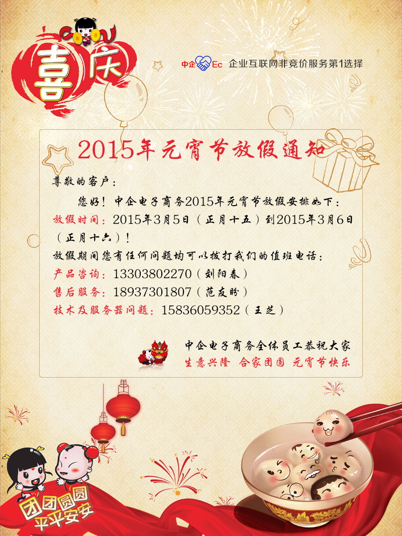 中企電子商務(wù)2015年元宵節(jié)放假通知